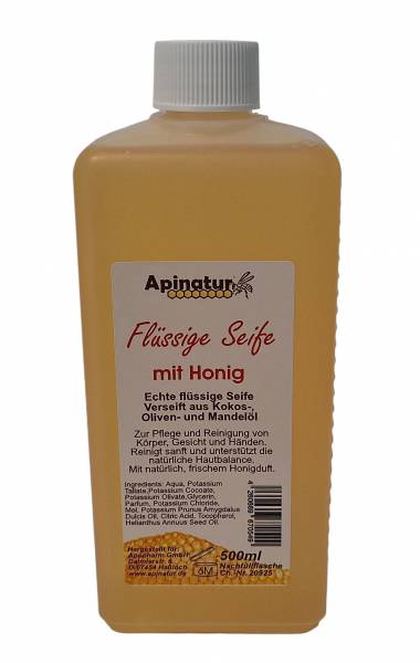 Flüssige Seife von Apinatur enthält besten Bienenhonig und eignet sich für Körper, Gesicht und Hände.