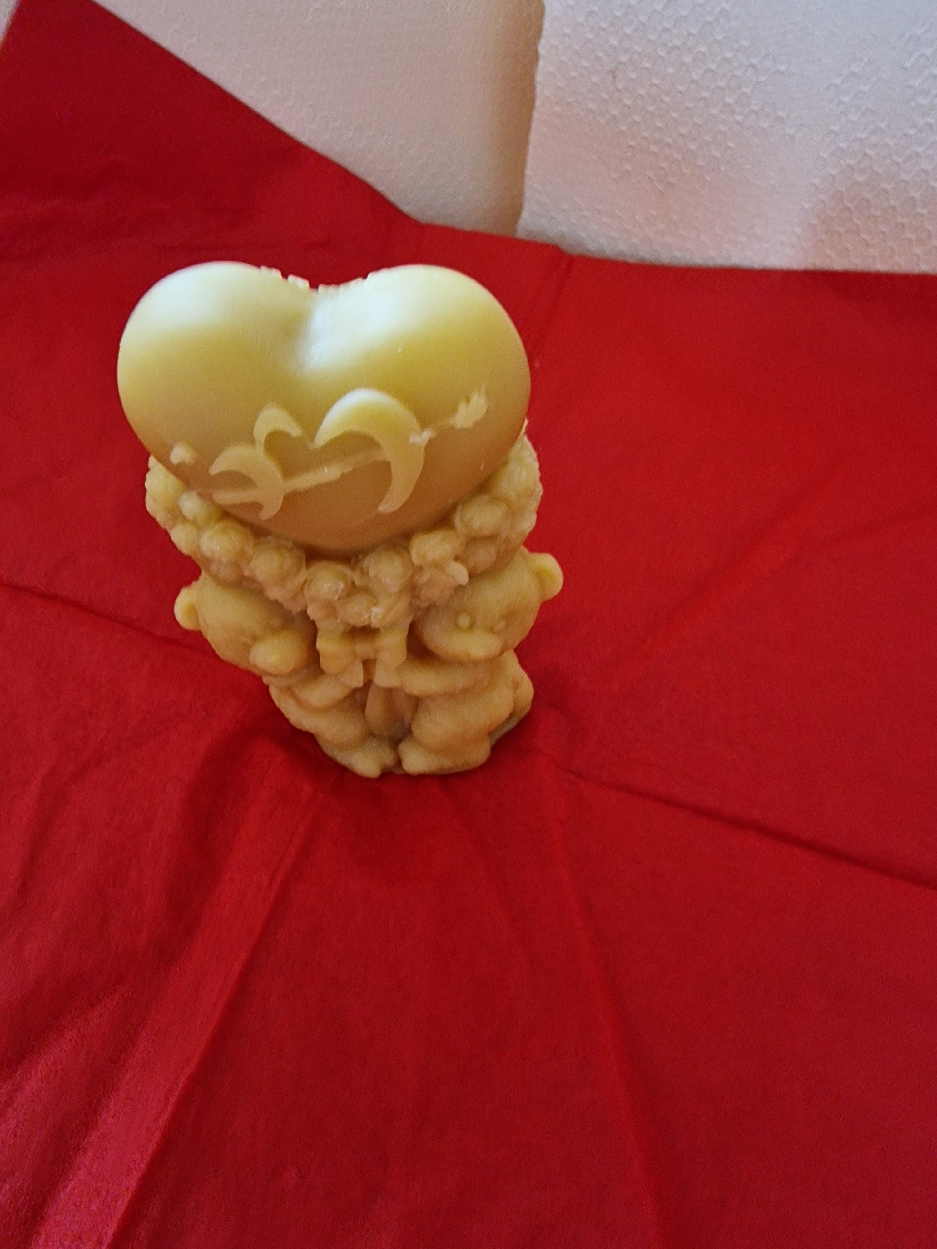 Bienenwachskerze Teddy mit großen Herz aus reinen Bienenwachs direkt aus dem Bienenstock