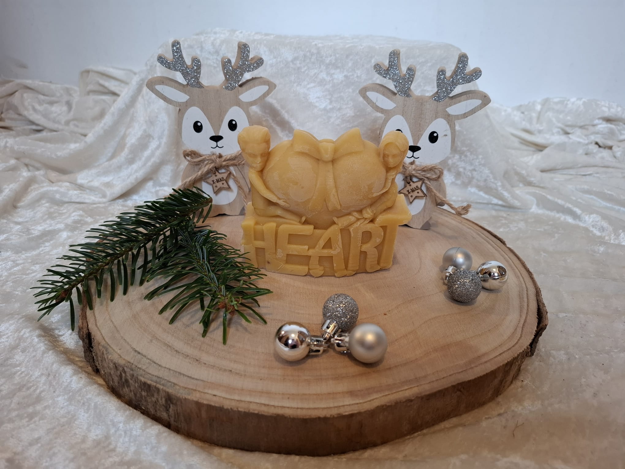 Bienenwachskerze mit Mann und Frau und Herz mit Heart, aus reinem Bienenwachs direkt aus dem Bienenstock